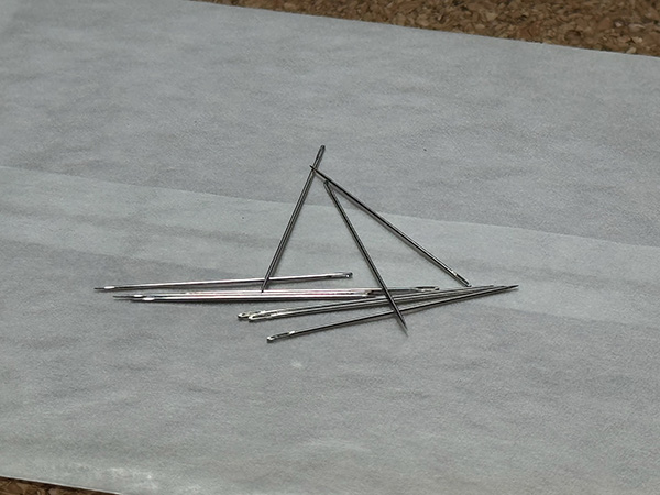 I’m very fussy about needles. Using the incorrect needle can result in poor appearance of your finished piece. We carefully source our needles to match the fabric and fine work in our Easy Sew kit. They need to be fine yet strong, long and have relatively large eyes which makes threading easier. I strongly recommend these needles for thread painting, but needles are a bit personal.